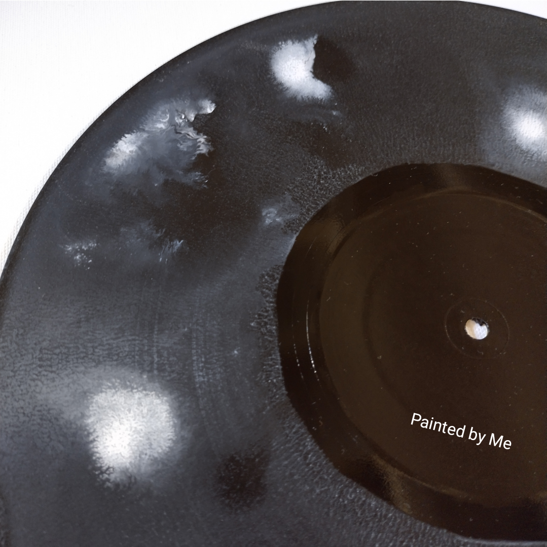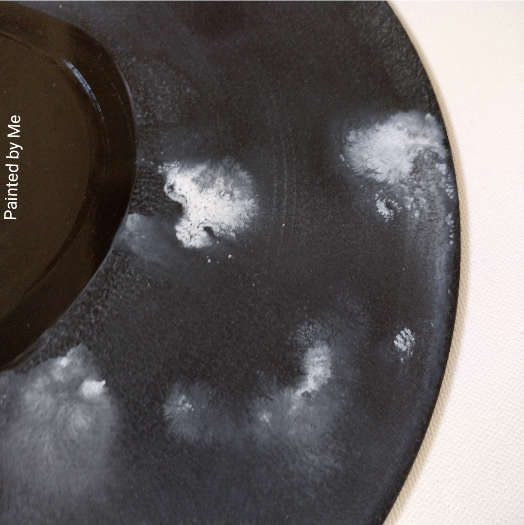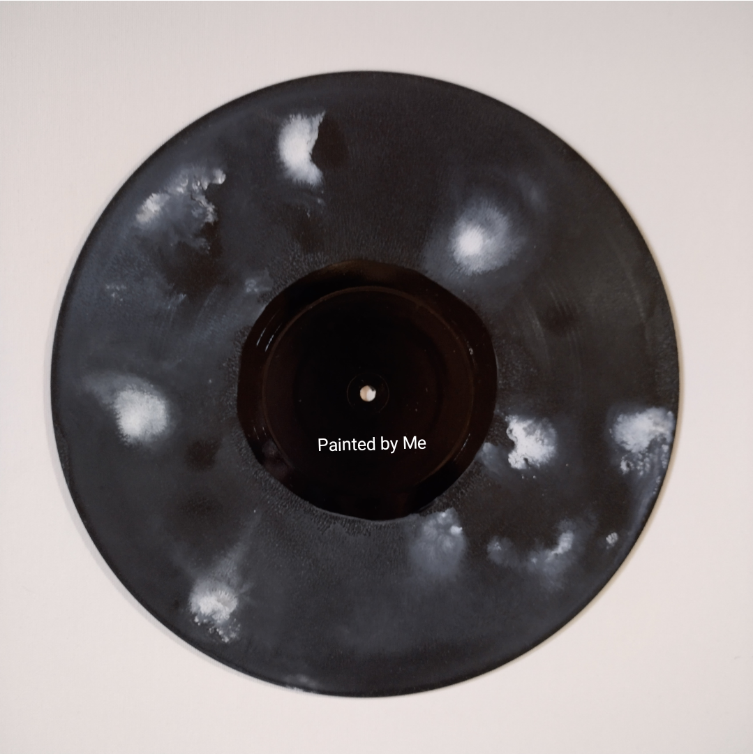 Klokken, op vinyl / oude lp's, in elke gewenste kleurencombinatie - wit / zwart acryl inkt
